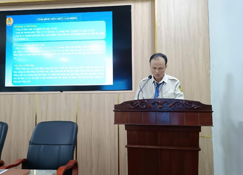 Ảnh: Đồng chí Nguyễn Tấn Phương, Chủ tịch CĐCS trình bày Báo cáo chính trị tại Đại hội