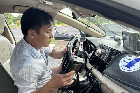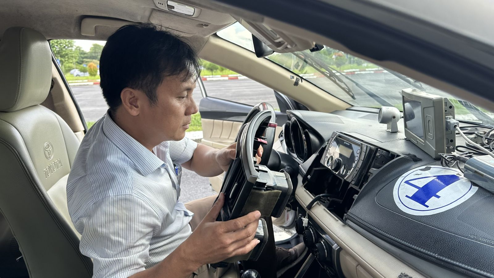 Ảnh bộ phận kỹ thuật đang lắp đặt thiết bị trên xe sát hạch