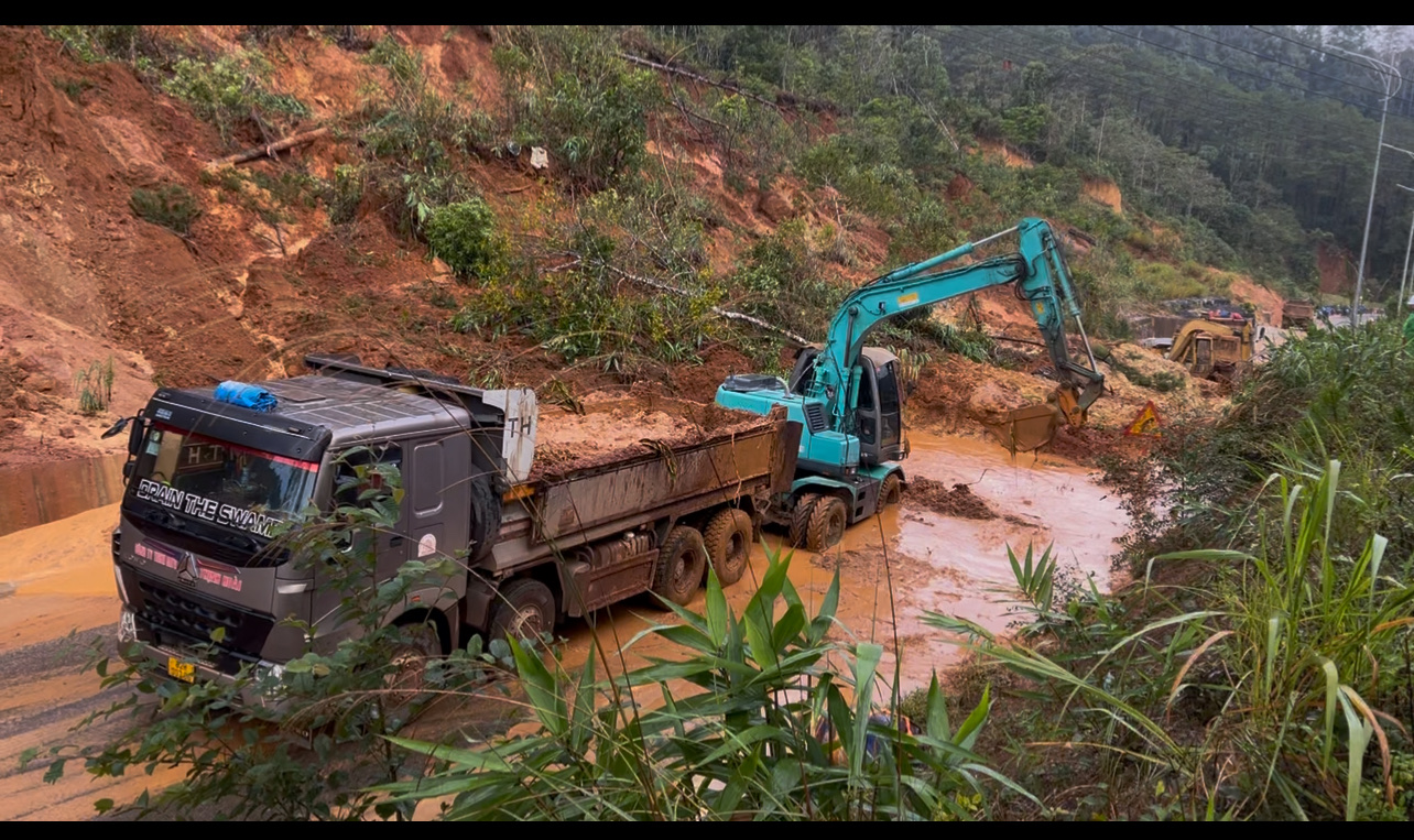 Rạng sáng ngày 23/11/2025 do ảnh hưởng của nhiều ngày mưa liên tục, tại Km112+200 Quốc lộ 24 khu vực xã Măng Đen đã bị sạt lở với khối lượng lớn, đất đá tràn mặt đường, lấp rãnh dọc, mặt đường bị trồi lún, giao thông bị ách tắt hoàn toàn.
