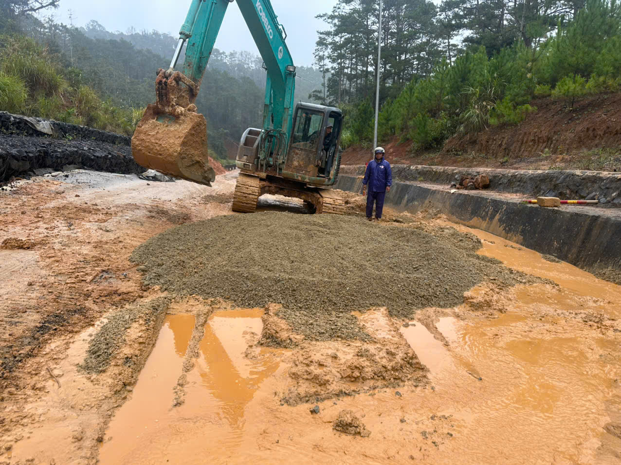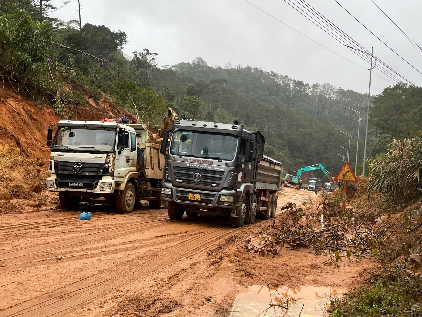 Nhận được tin báo, Lãnh đạo Sở Xây dựng đã bố trí nhân lực có mặt tại hiện trường để chỉ đạo đơn vị quản lý đường (Công ty Cổ phần quản lý và xây dựng công trình giao thông Kon Tum) khẩn trương triển khai công tác khắc phục; đơn vị đã huy động 02 máy và 06 ô tô tổ chức đào hốt dọn đất, đá sạt lở từ 02 hướng để đảm bảo giao thông, tuy nhiên với khối lượng sạt lỡ lớn, đất sình lầy, thời tiết mưa phùn gây rất nhiều khó khăn trong công tác khắc phục.