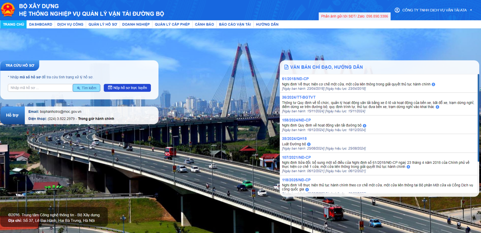 Trong giai đoạn đầu vận hành, Hệ thống có phát sinh vấn đề kỹ thuật ngoài ý muốn, gây ảnh hưởng đến tổ chức, cá nhân và cán bộ giải quyết hồ sơ. Sở Xây dựng trân trọng sự chia sẻ, thông cảm của các tổ chức, cá nhân trực tiếp sử dụng Hệ thống dịch vụ công trong lĩnh vực vận tải trong quá trình triển khai.