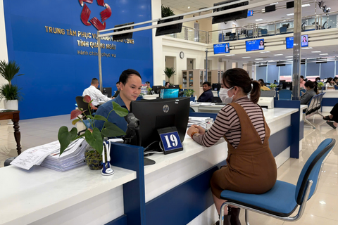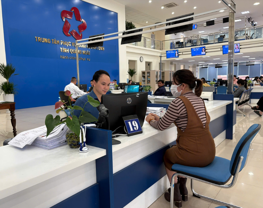 Hình ảnh: Bộ phận tiếp nhận hồ sơ hướng dẫn thủ tục cho công dân tại Trung tâm Phục vụ hành chính công tỉnh Quảng Ngãi.