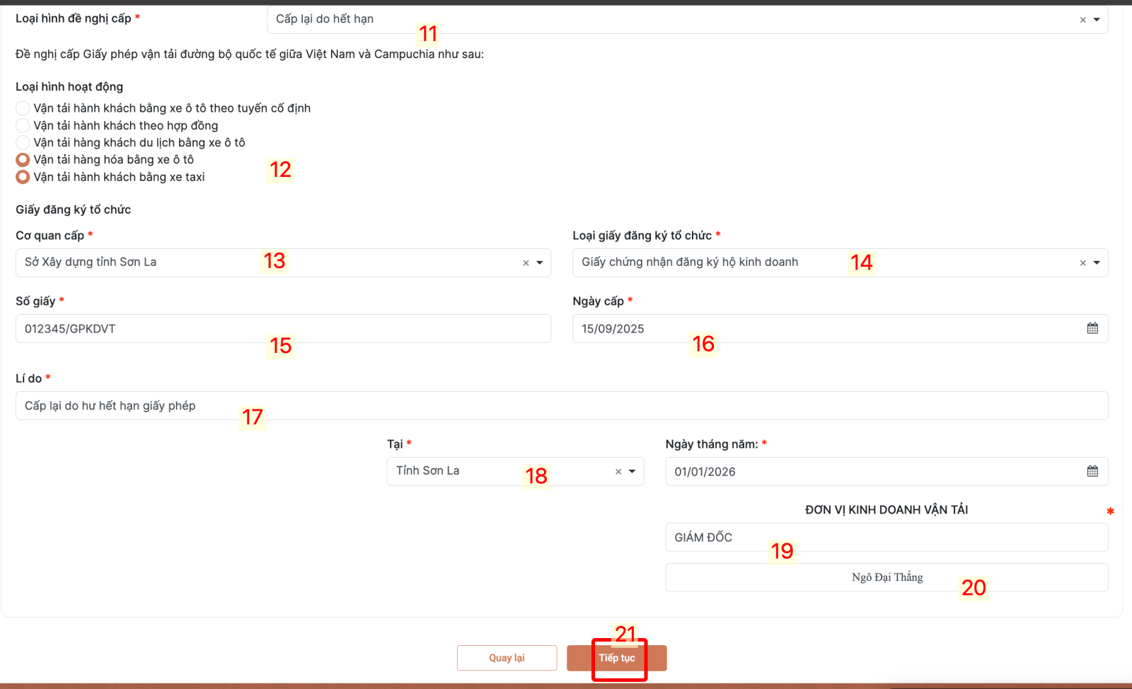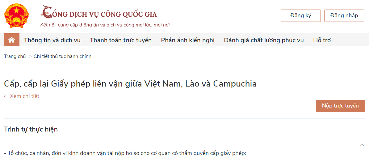 Theo đó, kể từ ngày 01/01/2026, Các tổ chức, cá nhân có nhu cầu đề nghị cấp mới, cấp đổi, cấp lại giấy phép vận tải liên vận quốc tế thực hiện nộp hồ sơ trực tuyến thông qua Cổng Dịch vụ công quốc gia tại địa chỉ https://dichvucong.gov.vn. Để bảo đảm việc tiếp nhận và xử lý hồ sơ được thông suốt, đề nghị các tổ chức, doanh nghiệp khi nộp hồ sơ thực hiện xác thực danh tính điện tử của tổ chức thông qua ứng dụng VNeID với chức năng “Định danh tổ chức”. (Hướng dẫn khai hồ sơ kèm theo)