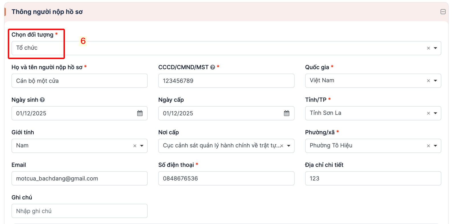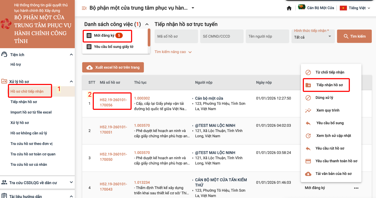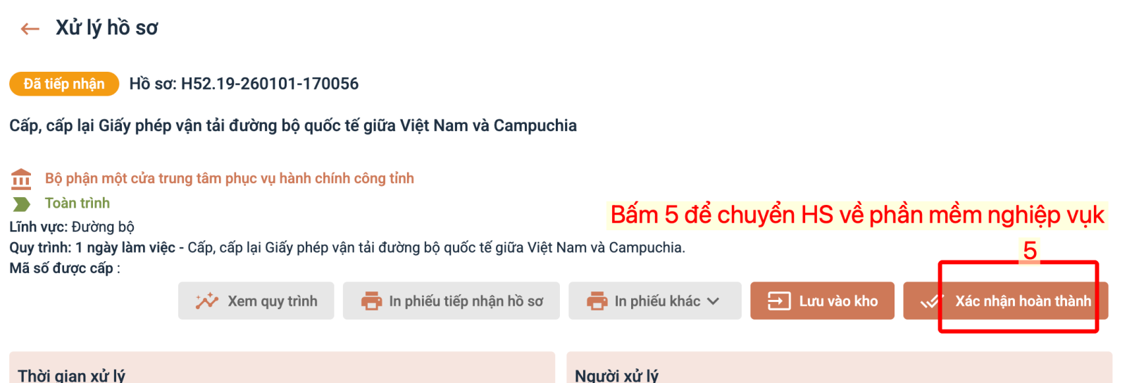 Thực hiện bước 5 để chuyển Hồ sơ về phần mềm nghiệp vụ