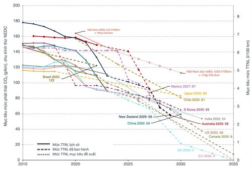 Năm 2013 Bộ Khoa học và Công nghệ đã ban hành TCVN 9854:2013 về giới hạn mức tiêu thụ nhiên liệu và phương pháp xác định cho xe ô tô con. Tuy các giới hạn tiêu thụ nhiên liệu trong TCVN 9854:2013 chưa được quy định bắt buộc áp dụng nhưng theo thống kê ban đầu của Hiệp hội các nhà sản xuất ô tô Việt Nam (VAMA) cho xe ô tô con từ 9 chỗ trở xuống trong giai đoạn 2016-2020, đa số các xe bán ra đạt được theo giới hạn tiêu thụ nhiên liệu cho các kiểu loại xe riêng lẻ (MEPS) theo quy định tại Mục 4 TCVN 9854:2013. Do vậy việc áp dụng các mức giới hạn tiêu thụ nhiên liệu cũ theo TCVN 9854:2013 sẽ không có hiệu quả cao trong việc giảm phát thải khí các-bon của ngành giao thông vận tải. Ngoài ra, đặt mục tiêu mức TTNL trung bình cho nhà sản xuất thay vì mục tiêu cho các mẫu xe riêng lẻ là một cách làm phổ biến ở các khu vực trên thế giới. Do các mẫu xe hiệu quả có thể bù đắp lại các tác động tiêu cực của các mẫu xe kém hiệu quả hơn từ cùng một nhà sản xuất, các cơ quan quản lý có thể đặt ra các tiêu chuẩn khắt khe hơn cho tất cả các phương tiện thay vì đặt mục tiêu cho từng mẫu phương tiện riêng lẻ nhằm thúc đẩy sự đổi mới công nghệ, và vẫn khả thi cho các nhà sản để đạt được mục tiêu giảm mức TTNL.